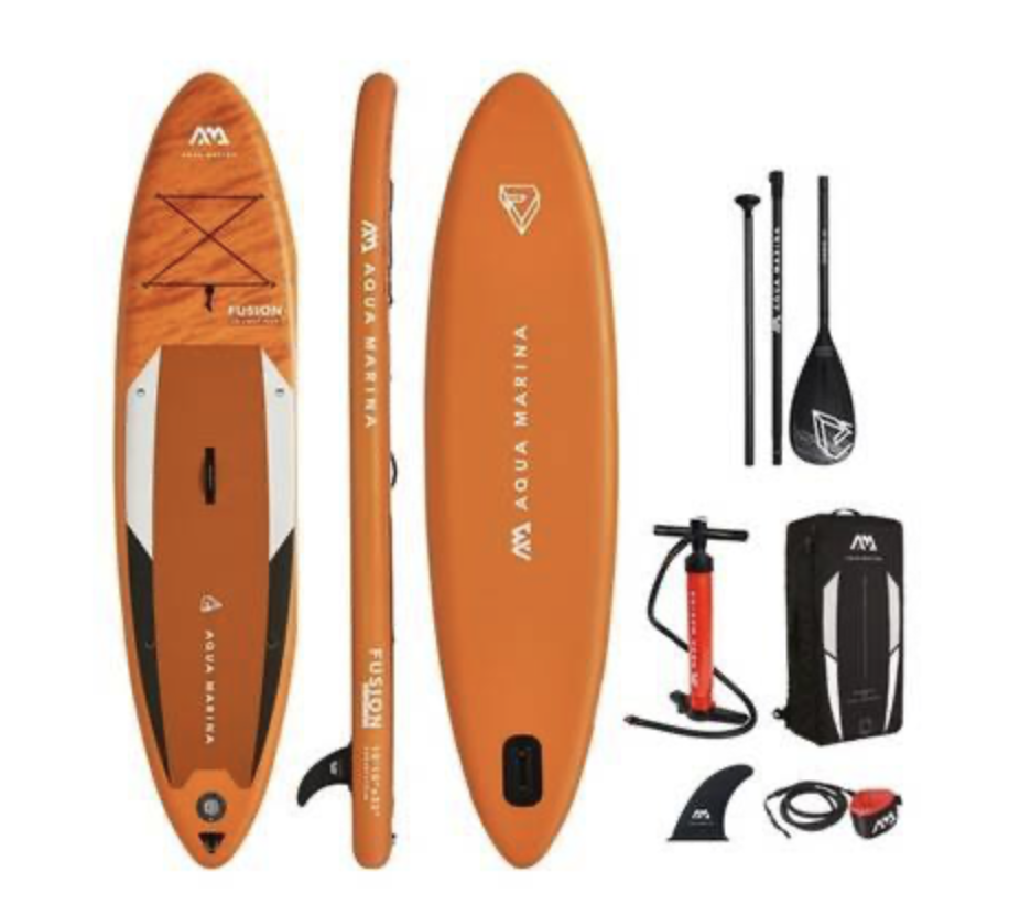 Model: BT-21FUP Board Size: 330 x 81 x 15 cm (10'10'' x 32'' x 6'') Volume: 320L Net Weight: 19 lbs / 8.6 kg Max. Payload: 330 lbs / 150 kg Max. Air Pressure 15PSI Lightweight drop stitch technology Full deck and base quality printing and rail design for superior optics Removable slide-in Center Fin for toolless installation Diamond grooving EVA footpad for ultimate grip and comfort Equipped with Adjustable bungee cord stopper to easily tighten luggage Quality rubber patched air valve for premium look and better airtightness in harsh environments Solid neoprene Carry handle specifically designed for a comfortable grasp 3-piece adjustable aluminium paddle featuring extended length and reinforced new blade for better paddling efficiency. Aqua Marina double action pump with a shock-proof gauge for fast & easy Inflation Heavy-duty Zip Backpack neatly packing all accessories for great portability. Extra stainless steel D-rings on deck pad for an optional seatUpgraded to better balanced sizes and shapes, the 2021 models are the ideal all-around SUP boards offering incredible stability and good gliding experience, competent in any conditions from flat water to small waves. The new BREEZE/VAPOR/FUSION/MONSTER feature more generous volume and payload that cater to those looking for easier ride and carrying more luggage. The comfortable diamond grooving footpad could provide extra grip while the strengthened stainless steel leash D-ring could ensure a safe ride in small waves. Constructed of Aqua Marina’s exclusive Drop Stitch Light Technology, these all-arounders are lightweight but super stiff. Coming with our new customized zip backpack this year, these classic models are highly portable with smaller size whilst packing everything inside.
