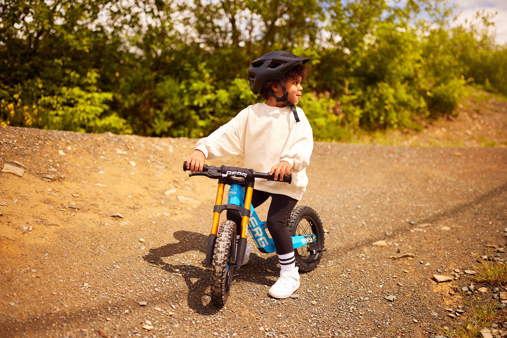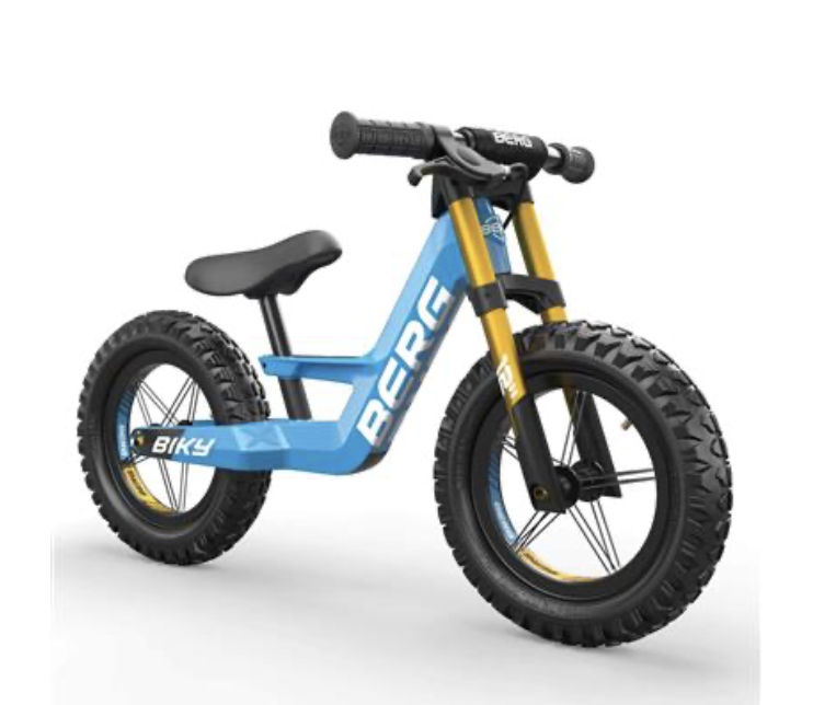 Like the other models in the BERG Biky family, this balance bike has an ultra-lightweight frame, a safe handlebar deflection limiter, an adjustable saddle and comfortable pneumatic tyres. This makes this sturdy blue balance bike ready for any adventure. Are you ready too?