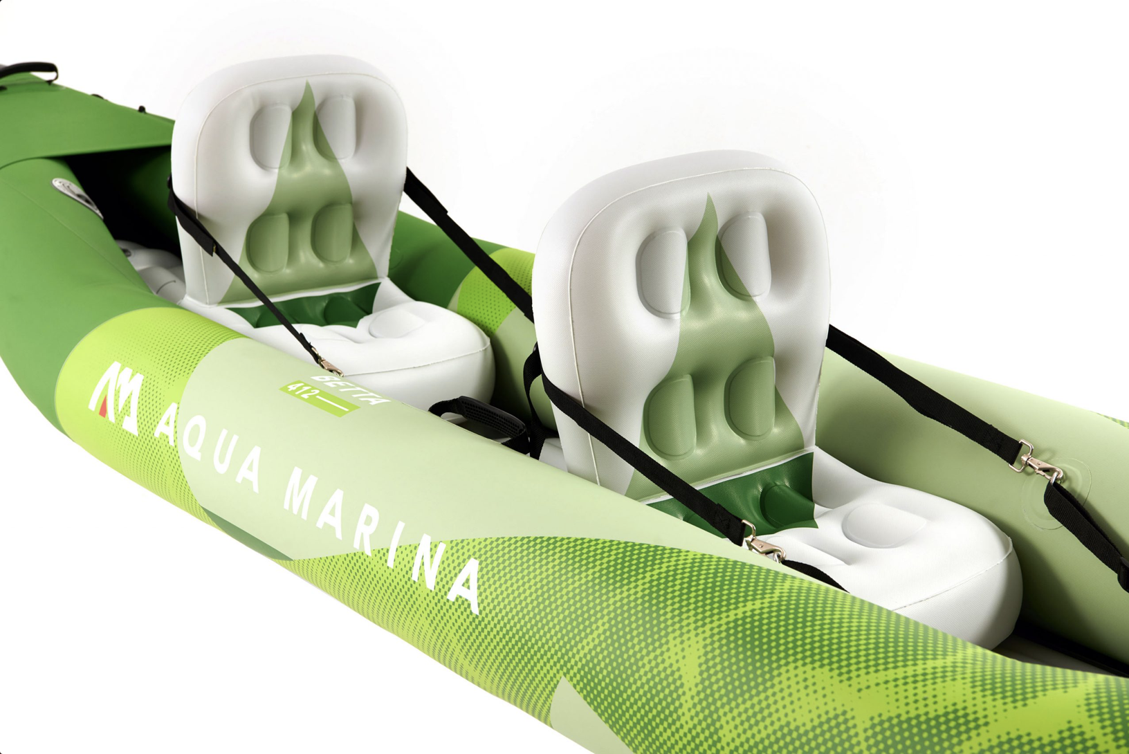 • Model: BE-412 • Size: 412cm x 80cm • Maximum Passenger: 2 • Net Weight: 11.8 kg • Max. Payload: 180kg • Warranty: 6 months Inflatable deck. Kayak paddle set included. Seamless Tube. Tube chamber seams are all high frequency welded for a solid bonding strength. Hard V-cone protection on both stem and stern for anti-collision purpose. Water splash guard bow protecting the cockpit. Adjustable supporting footrest for a comfortable journey. Drain Valve: Superfast 1+2/1+4 self-bailing valves can be left open for quick water drainage in whitewater and ocean kayaking or closed for flat-water paddling. Gear Capacity – Generous deck space for improved gear capacity • Carry Handle – Front, rear and center rubber carry handles for easy transport • Safety Rope – Designed for easy grasp when falling in the water • D-ring – Multiple strap D-rings allow seat position adjustment • Valve – High pressure recessed valve for quick inflation and deflation • Fin System – High performance two center fins for excellent straight-line trackingThe well-known BETTA series is mainly designed to provide fun for family, friends or for any recreational use. Constructed of reinforced PVC material, these lightweight BETTA kayaks are ideal low-maintenance boats for those looking to get on water in a versatile, easy-to-paddle craft. Featuring Aqua Marina’s iconic outline shape, the new BETTA models are refreshed with stunning look and upgraded with user-friendly details. Easy weekend trips or poking around the lakes and rivers near a cottage are where these kayaks will excel.