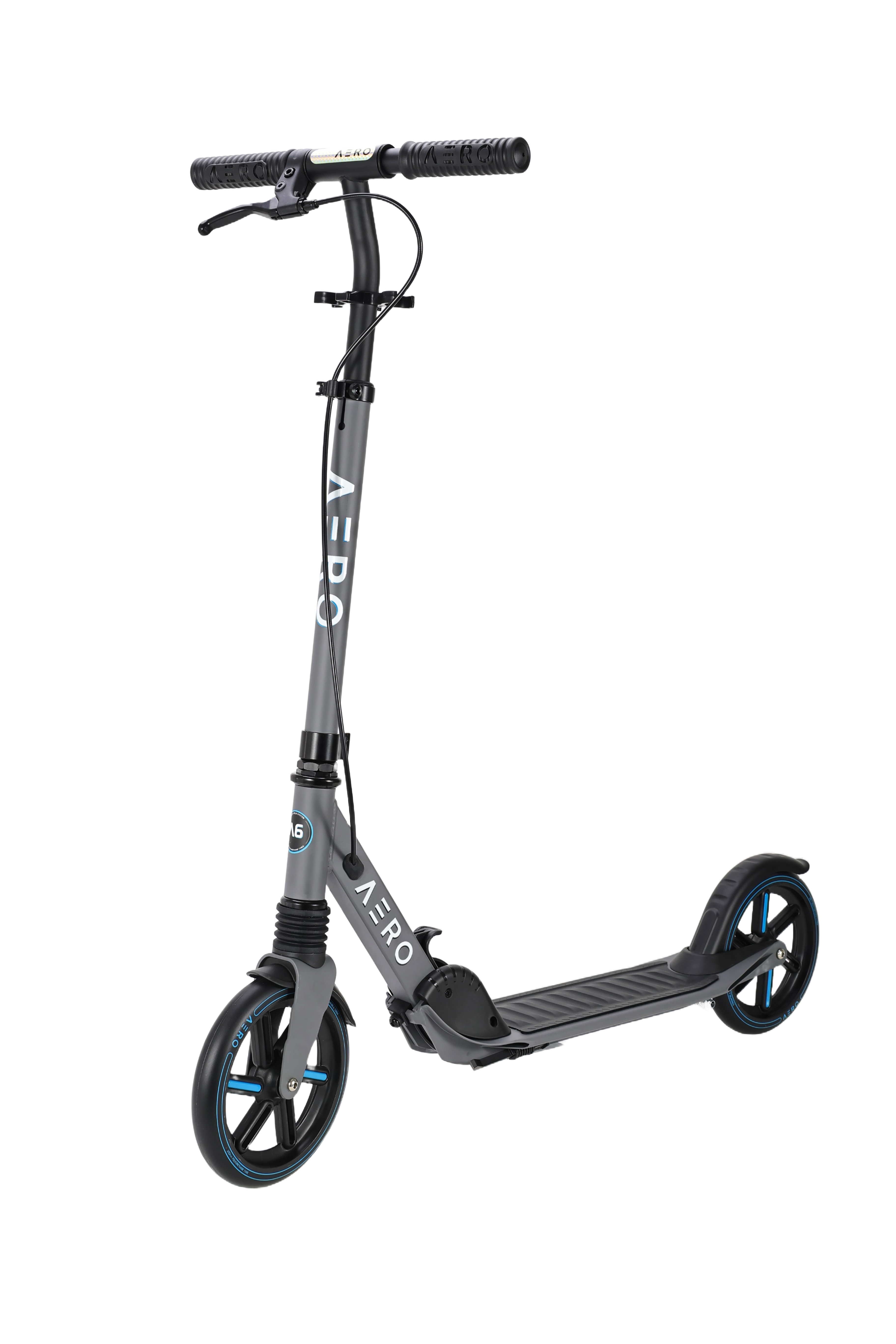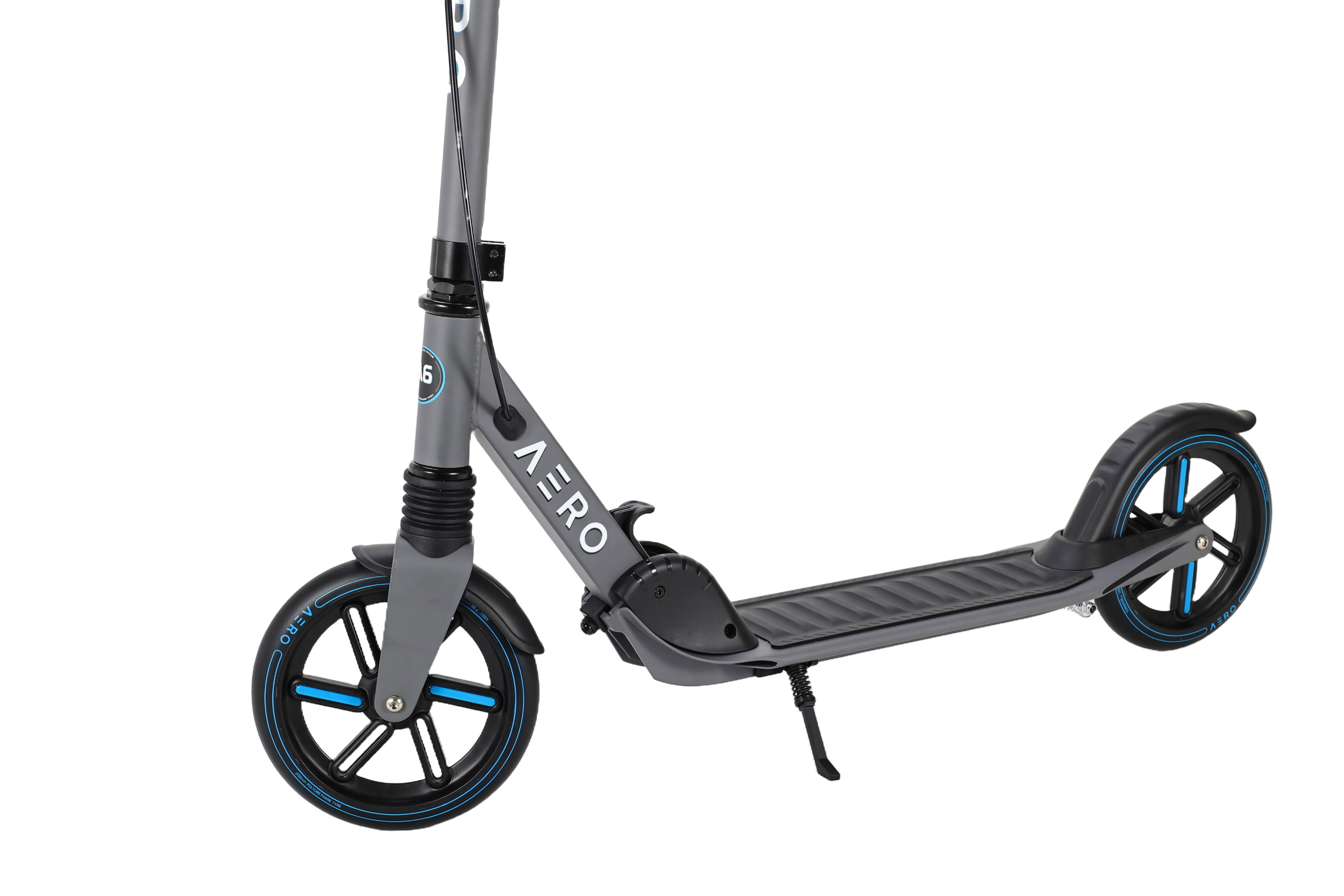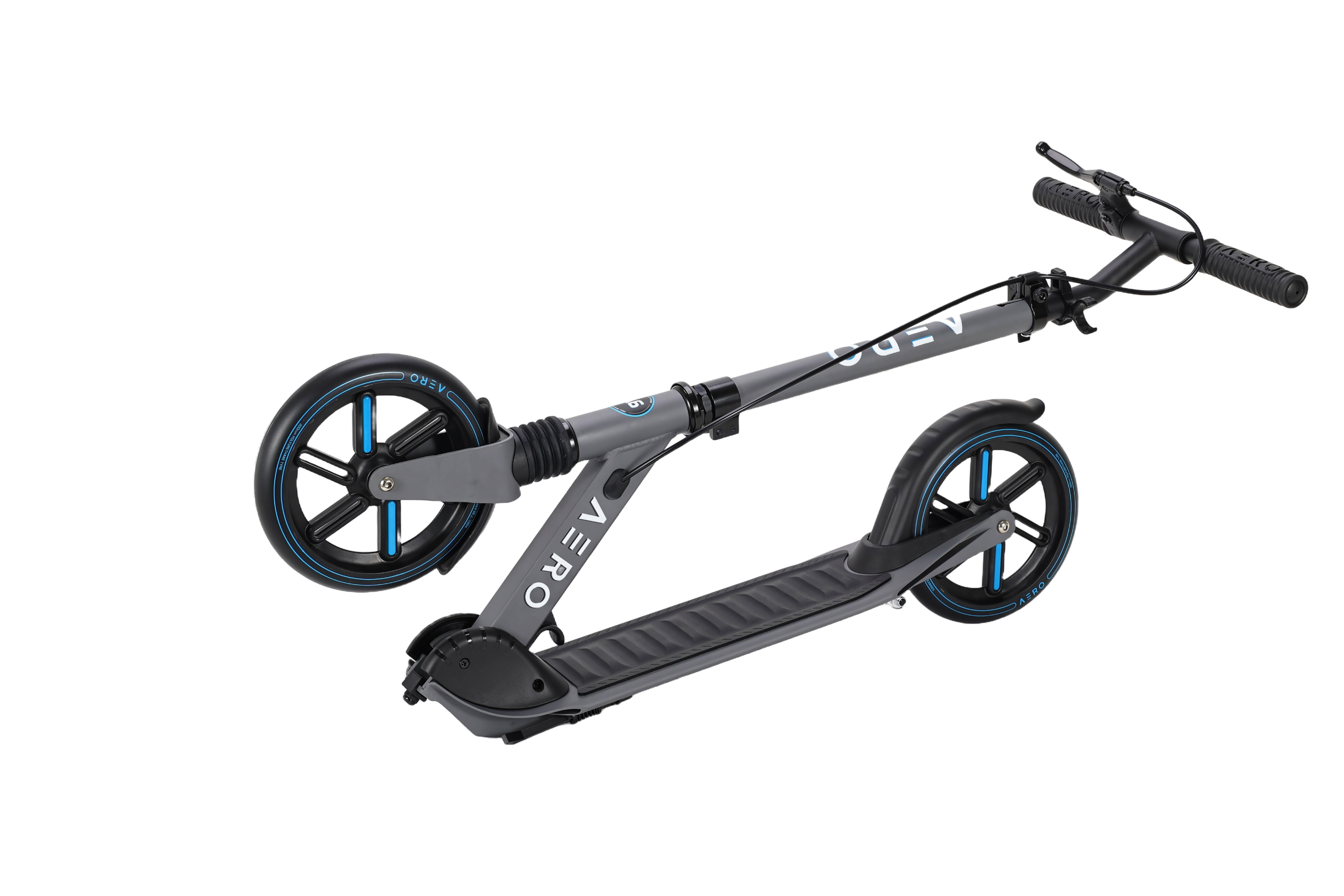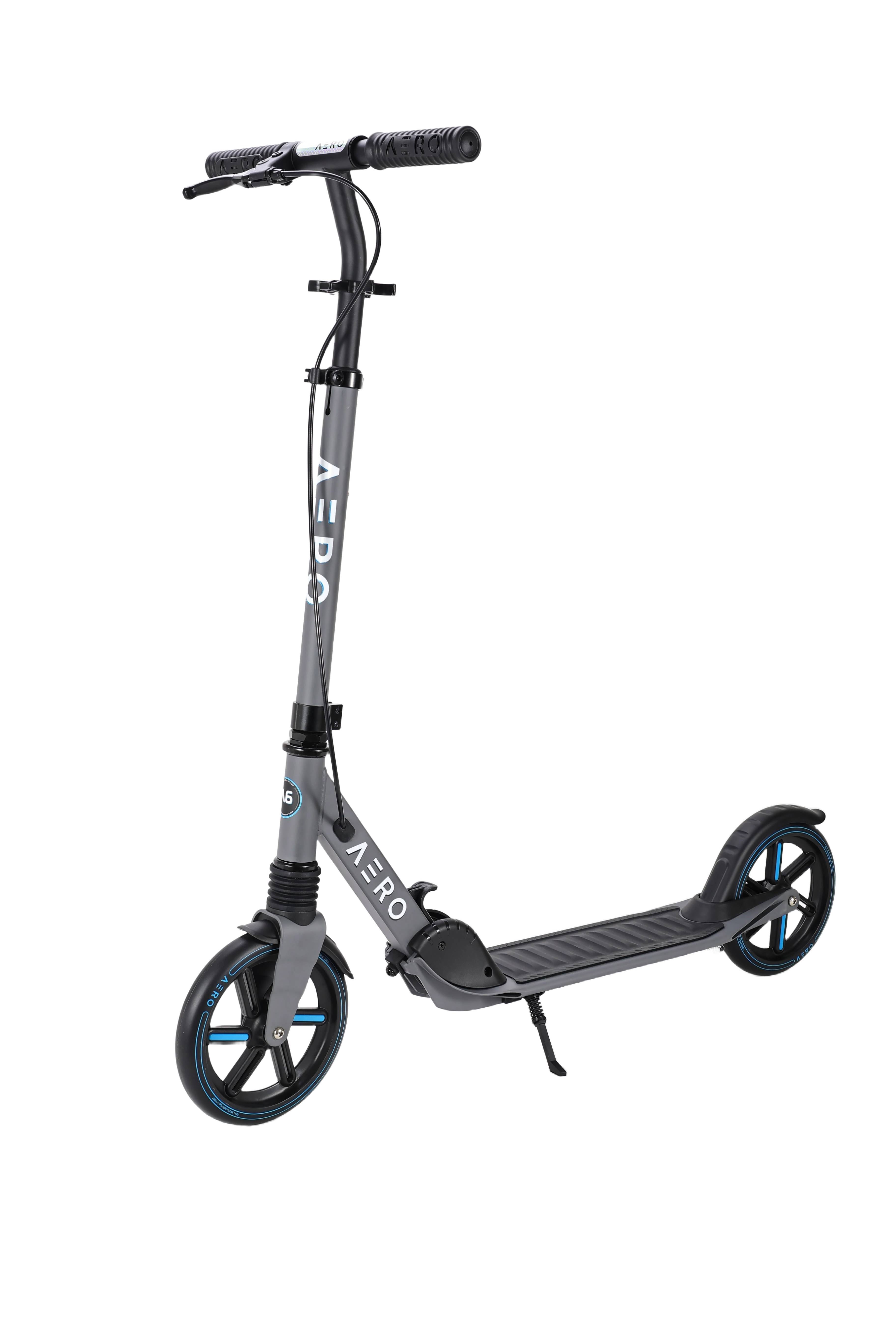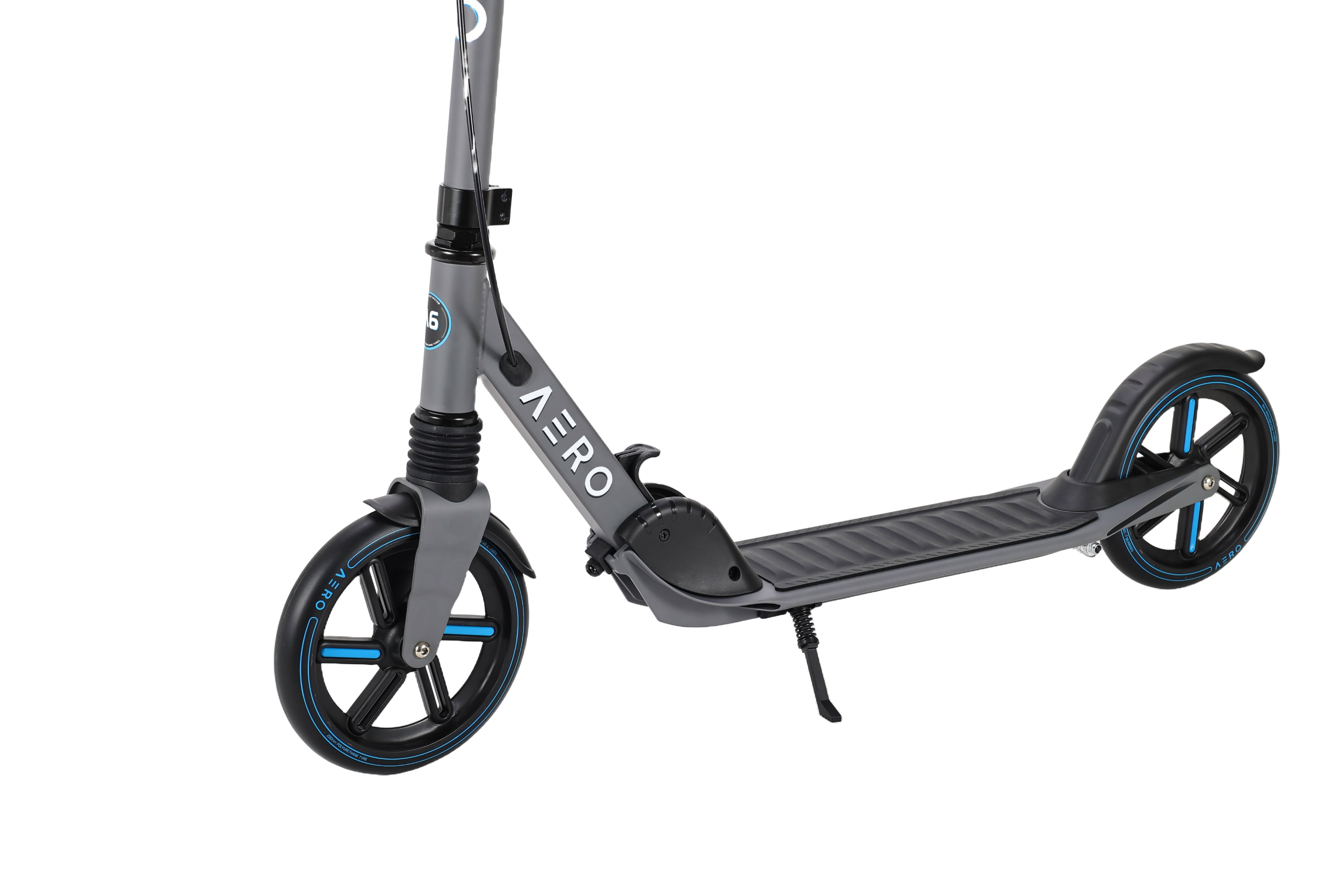 For children 8 years old + and Adults; Max Load: 100kg; Foldable and Height adjustable; Front Suspension; Kickstand included; Product Size: 93*37*99cm; Product Folded Size:87*41*38cm; Frame: Steel; Wheel: PU/200mm /85A; Brake system: hand brake and foot brake; Bearing: ABEC-7; Available colours: Beige or GreyThe AERO A6 kick scooter is specially designed for big kids 8-12, teens, and adults. It is perfect for both recreational sports and short-distance commuting.In additional to the standard foot brake, this adult 2 wheels kick scooter features a hand-operated brake for enhanced control and safety. This scooter for adults is equipped with 8” big PU wheels and built-in shock absorption, ensuring a smooth and comfortable ride on hard and uneven surfaces. This adult kick scooter comes with an extra wide deck with anti-slip rubber mat, which is soft and durable, and so you do not worry that it gets dirty or wet anymore.This adult scooter adopts a reliable folding mechanism. The handlebar height is can be adjusted to ‘evolve’ with your children ensuring a best fit for boys or girls ages from 8 to 12 years old, teens, big kids, youth as well as adults, as it supports up to 100kg.