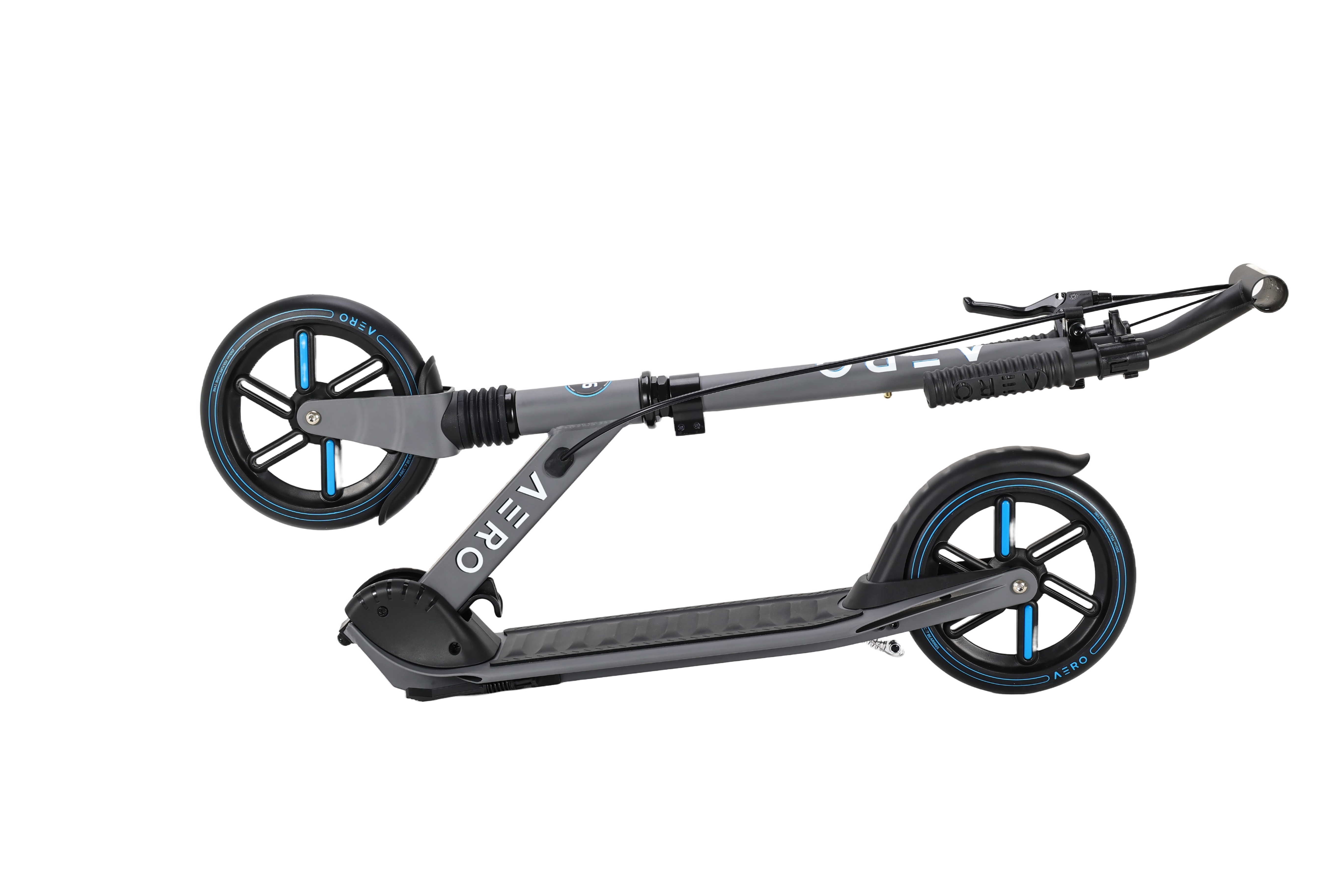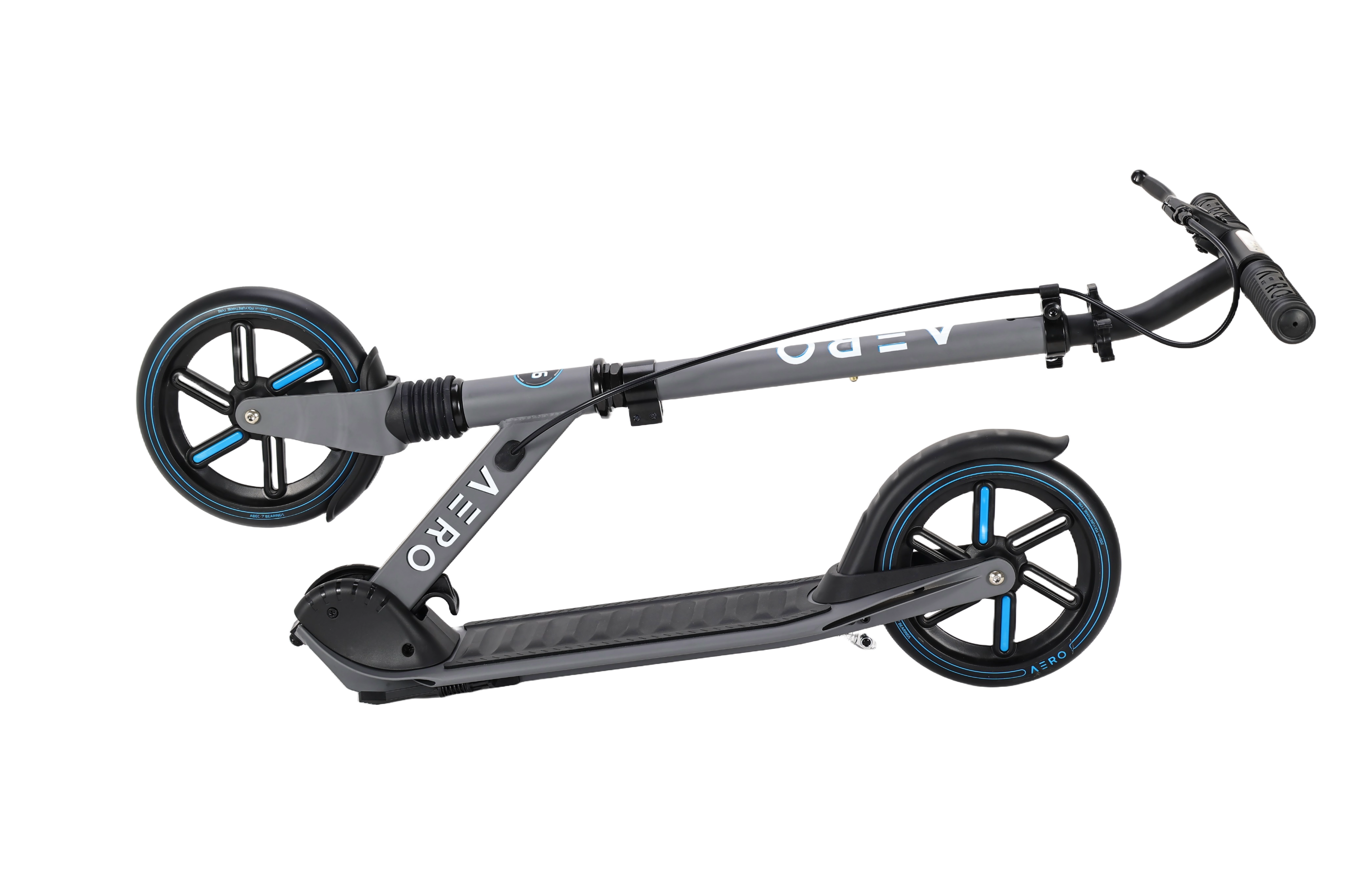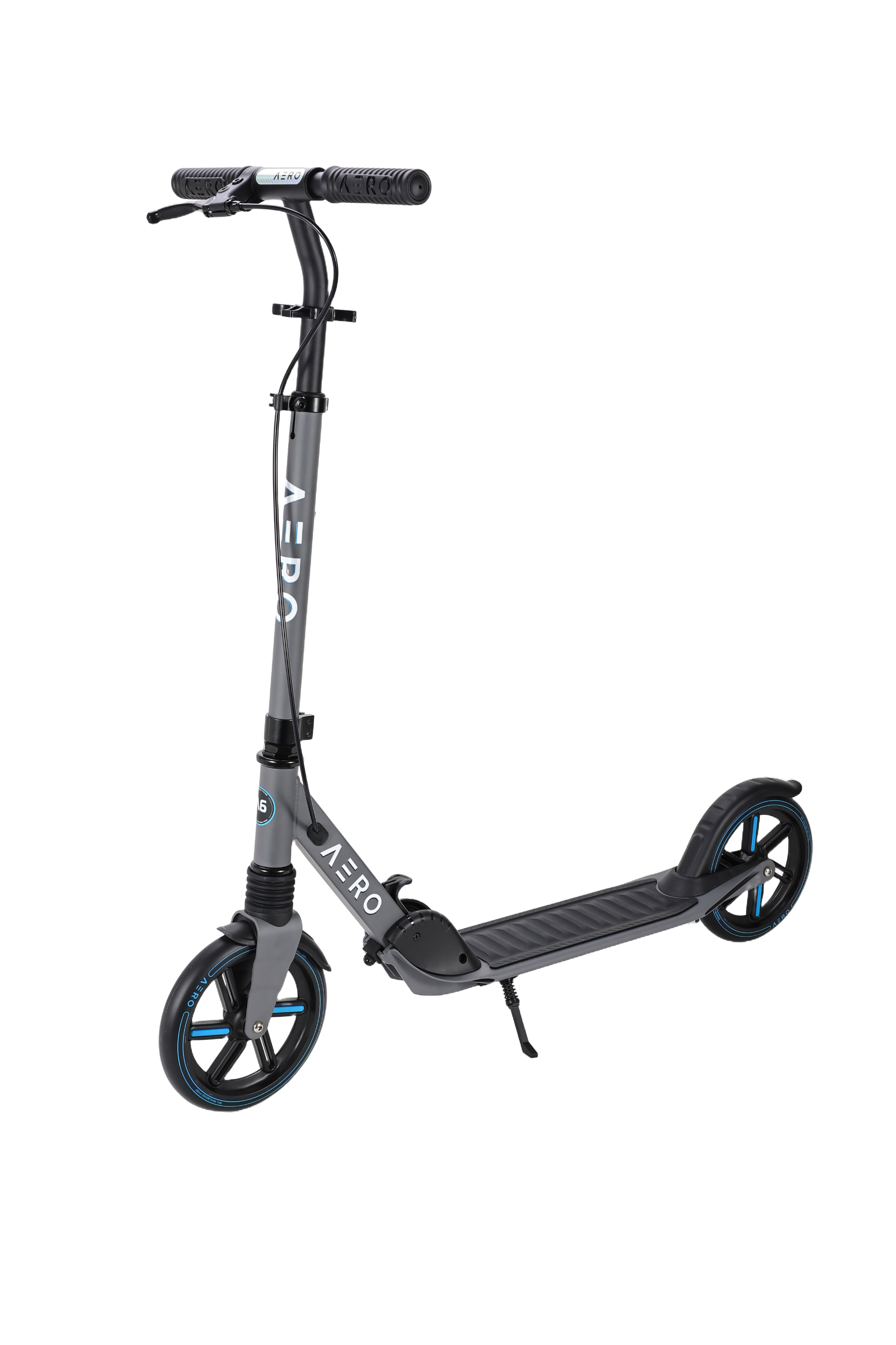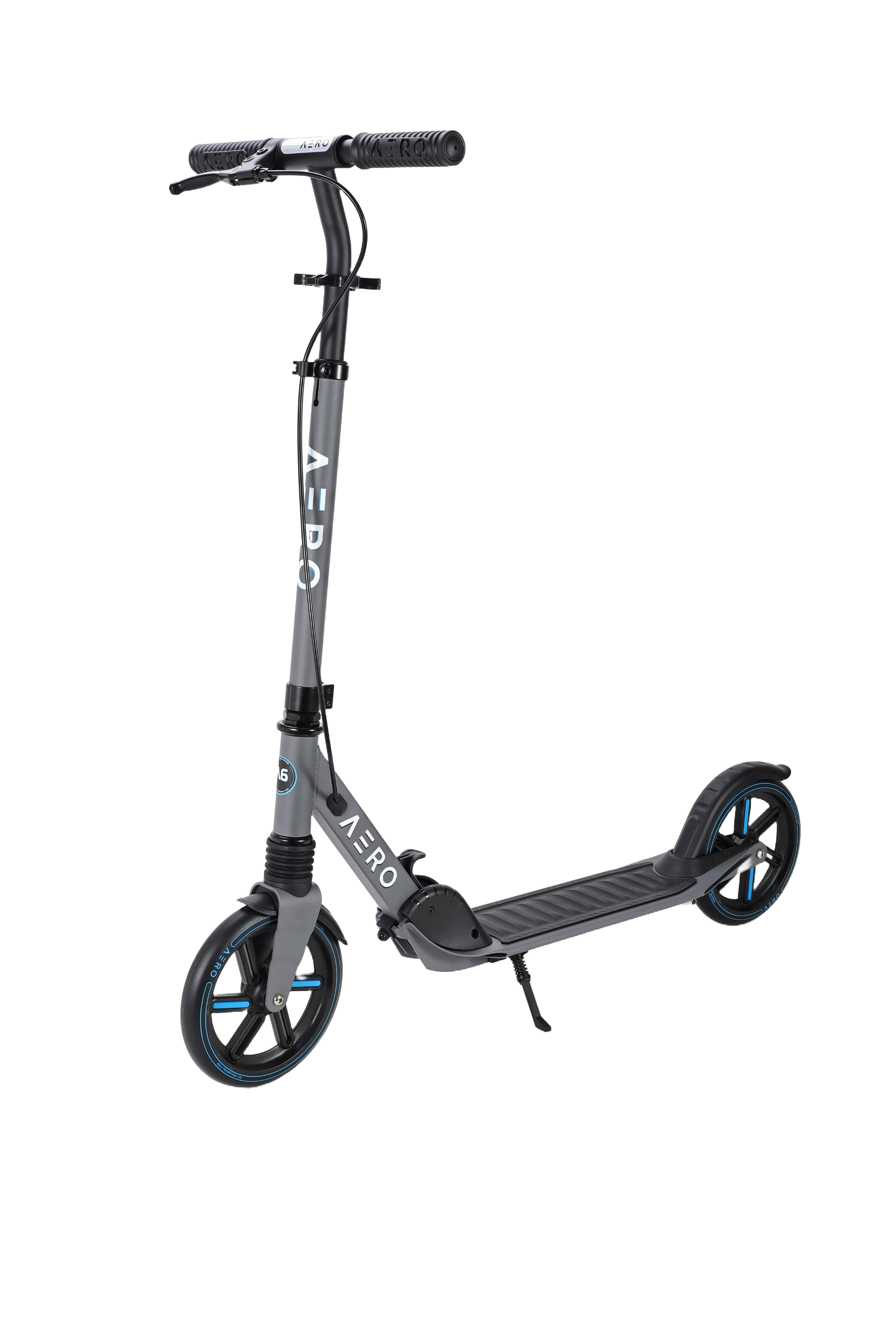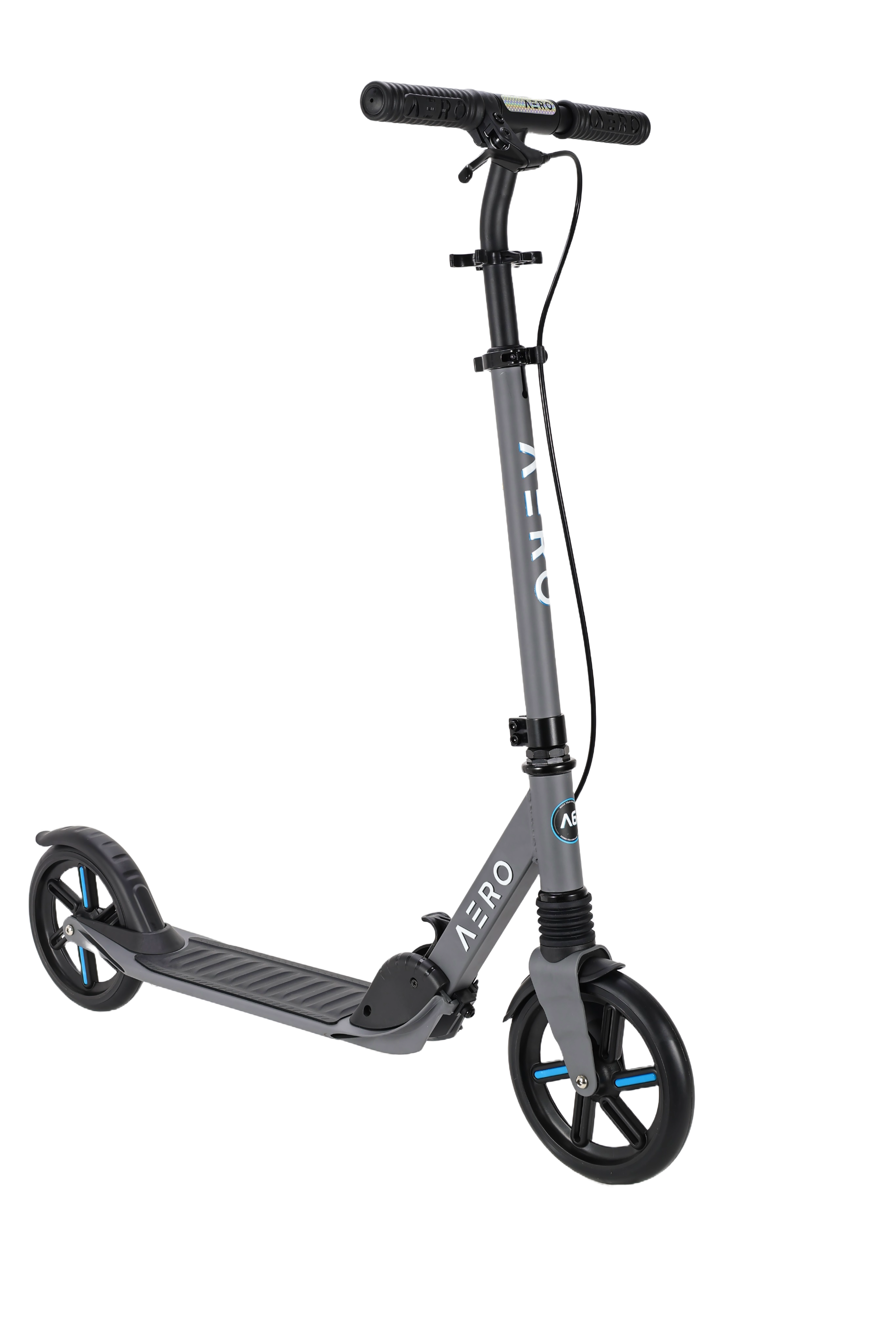 For children 8 years old + and Adults; Max Load: 100kg; Foldable and Height adjustable; Front Suspension; Kickstand included; Product Size: 93*37*99cm; Product Folded Size:87*41*38cm; Frame: Steel; Wheel: PU/200mm /85A; Brake system: hand brake and foot brake; Bearing: ABEC-7; Available colours: Beige or GreyThe AERO A6 kick scooter is specially designed for big kids 8-12, teens, and adults. It is perfect for both recreational sports and short-distance commuting.In additional to the standard foot brake, this adult 2 wheels kick scooter features a hand-operated brake for enhanced control and safety. This scooter for adults is equipped with 8” big PU wheels and built-in shock absorption, ensuring a smooth and comfortable ride on hard and uneven surfaces. This adult kick scooter comes with an extra wide deck with anti-slip rubber mat, which is soft and durable, and so you do not worry that it gets dirty or wet anymore.This adult scooter adopts a reliable folding mechanism. The handlebar height is can be adjusted to ‘evolve’ with your children ensuring a best fit for boys or girls ages from 8 to 12 years old, teens, big kids, youth as well as adults, as it supports up to 100kg.