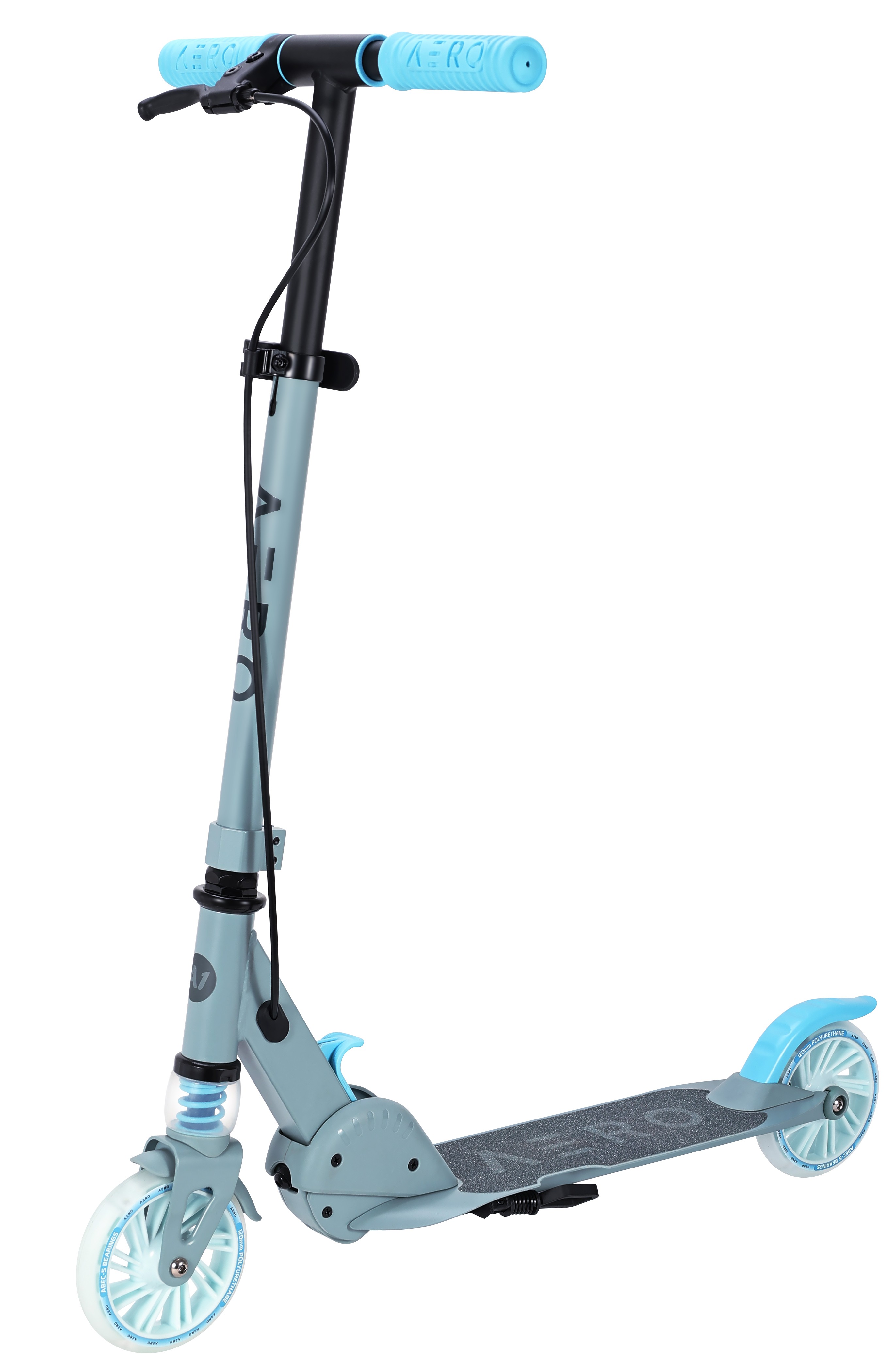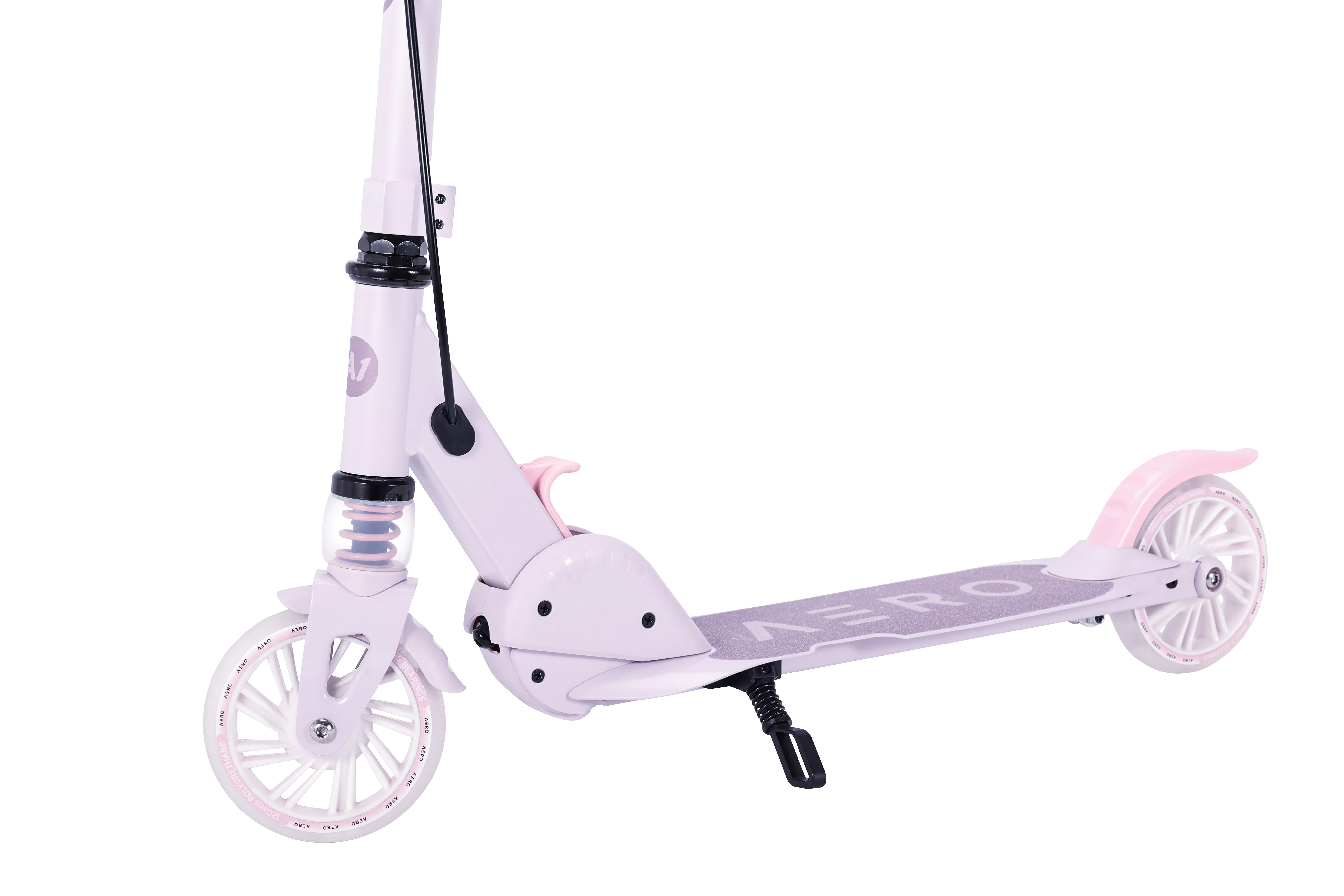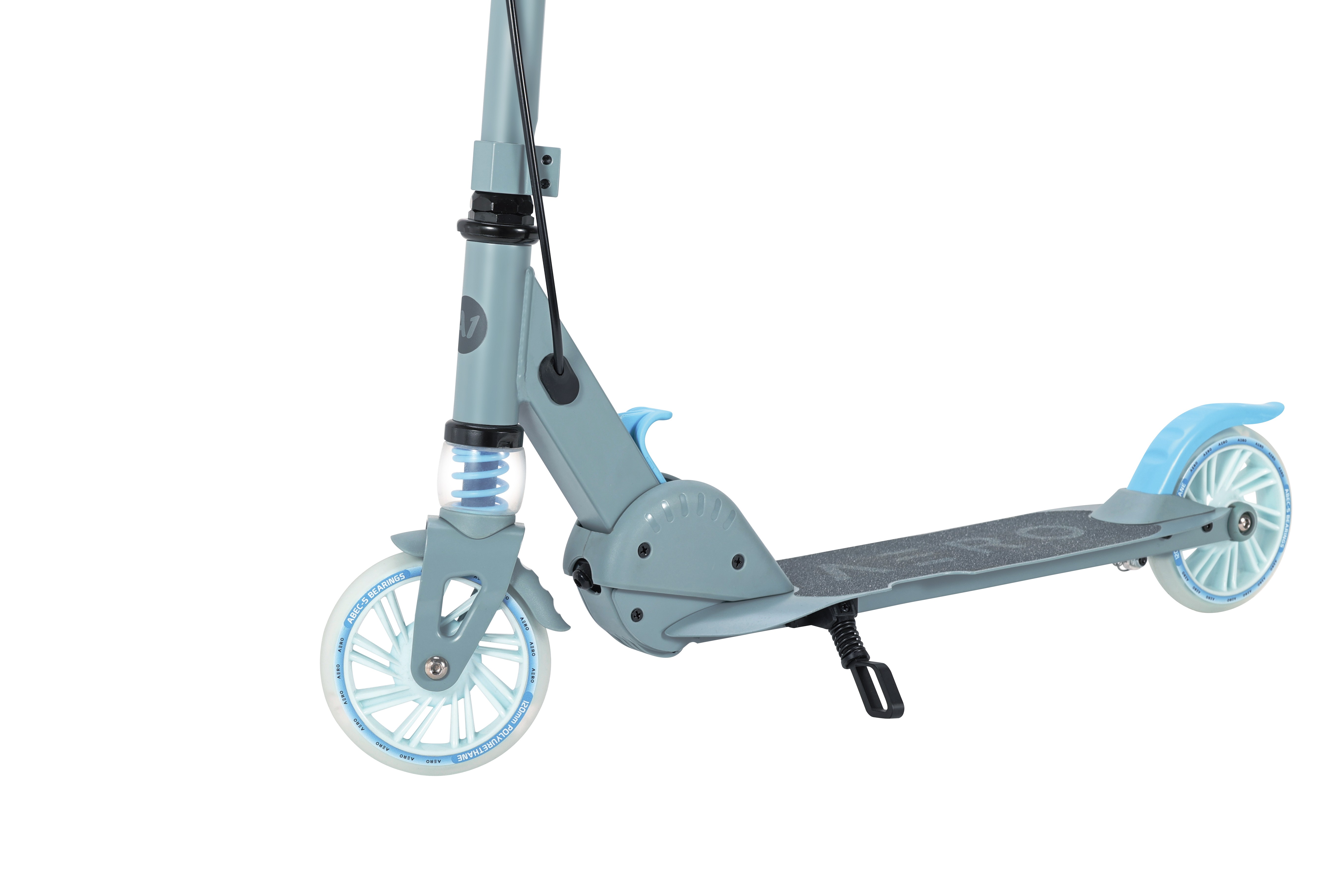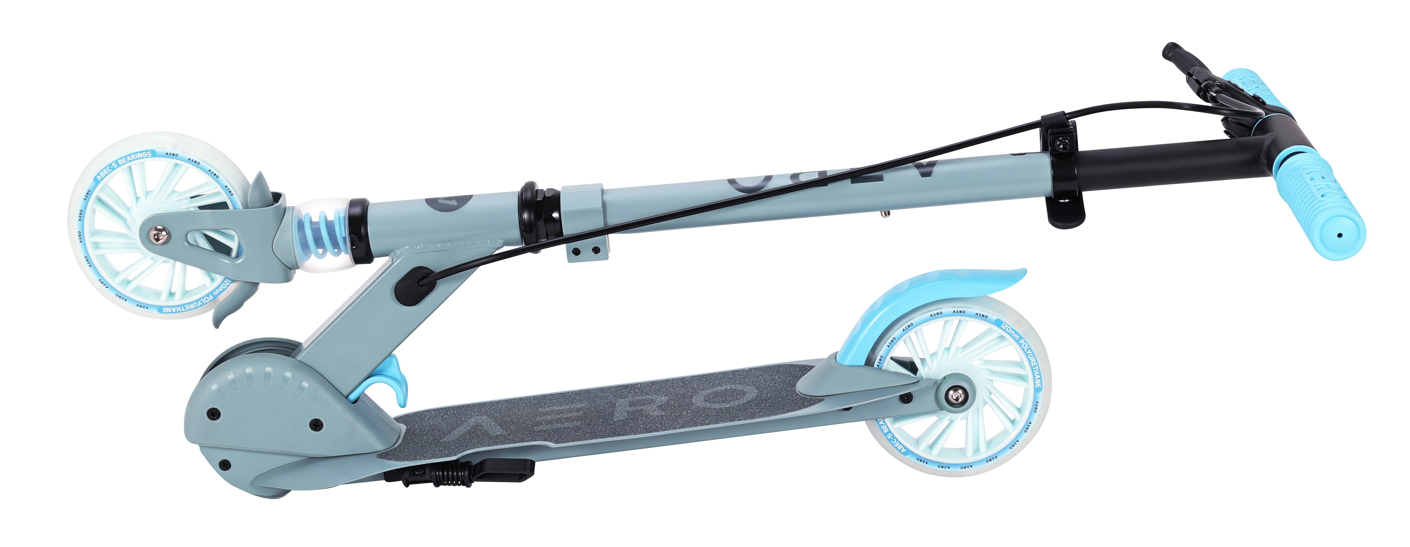 For children 5 years old +; Max Load: 50kg; Foldable and Height adjustable; Front Suspension; Kickstand included; Product Size: 67*33.5*82cm; Frame: Steel; Wheel spec:125 mm polyurethane(PU); LED Wheels; Brake system: hand brake and foot brake; Bearing: ABEC-5; Available colours: Blue or PinkAero A1 two wheels kick scooter is designed for kids ages 5+. It encourages boys or girls to get outside and exercise while having fun. In additional to the standard foot brake, this kids scooter features a hand-operated brake for enhanced control and safety. This scooter for kids is equipped high-rebound PU wheels and built-in shock absorption, ensuring a smooth and comfortable ride on hard and uneven surfaces. This children scooter comes with motion-activated light up wheels, making it one of the coolest rides on the planet. This 2 wheels kid scooter adopts our patented folding mechanism. The handlebar height grows with your child, ensuring a perfect fit for boys or girls ages from 5 year old, or up to 50 kg. Simply unfold your Aero Scooter, adjust the handlebar to your ideal height, and you're ready to go