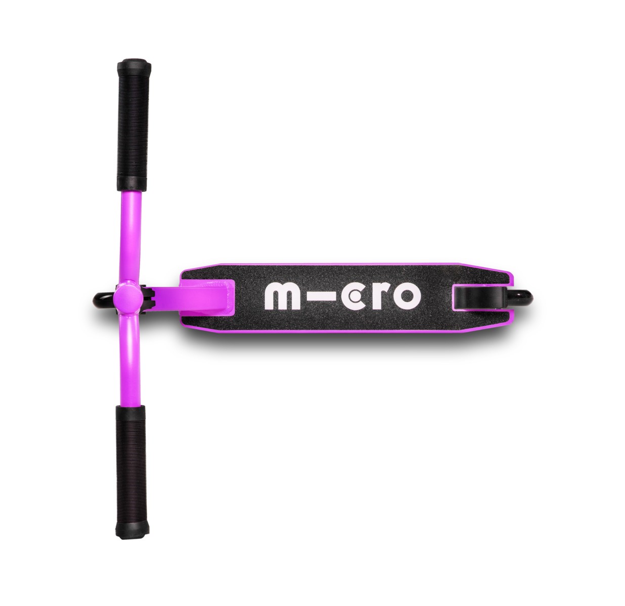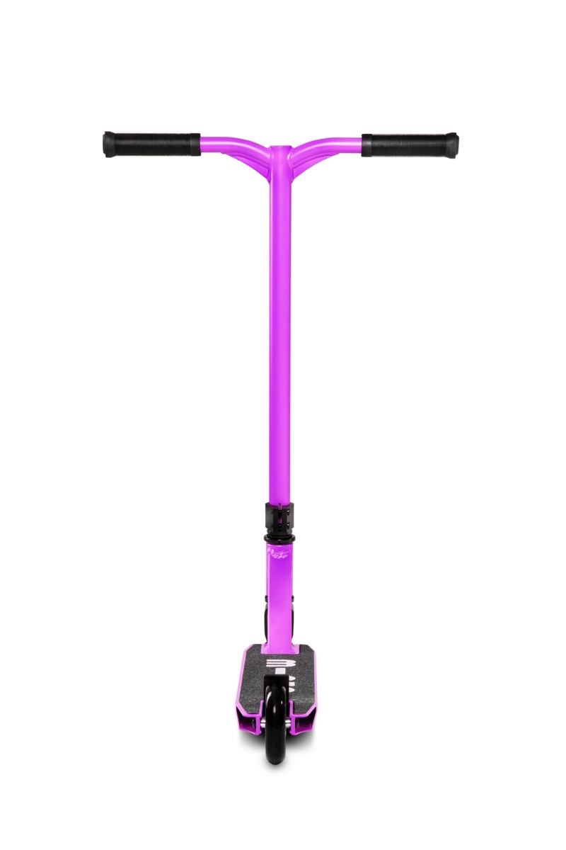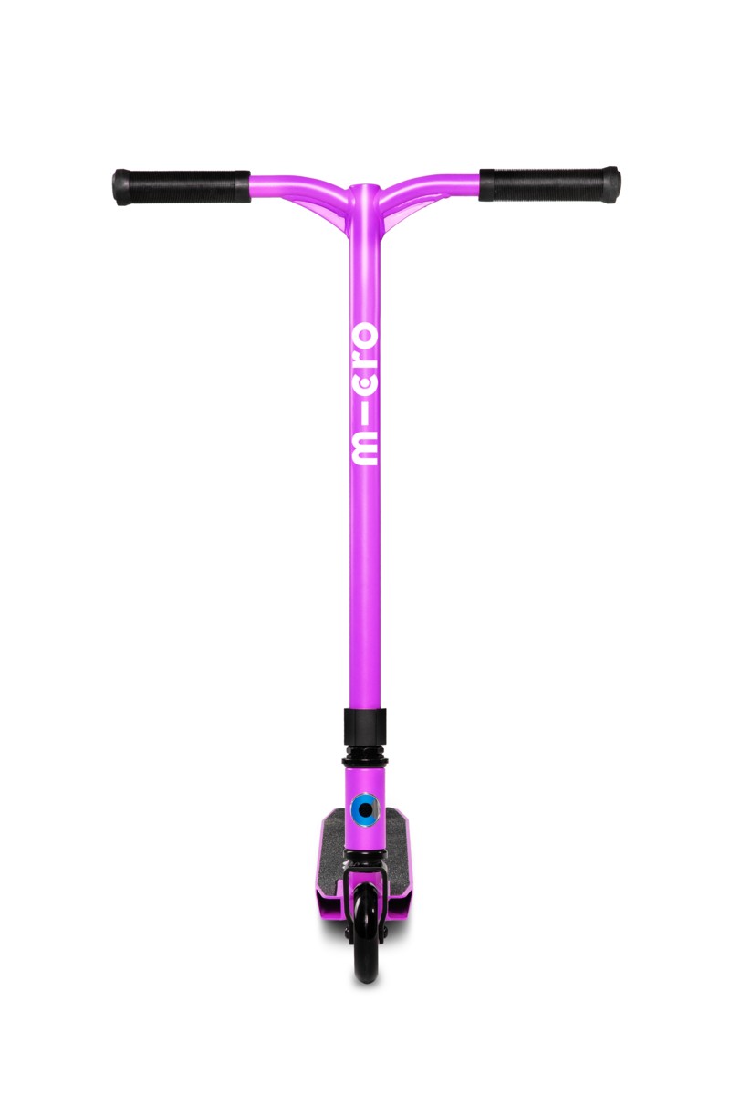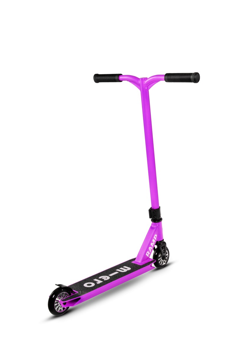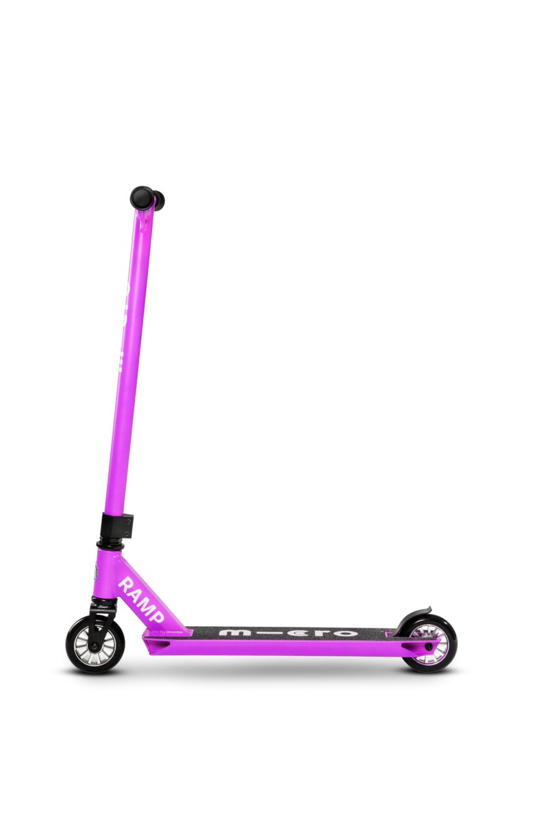 For Teens Max Load: 100 kg Two wheels Wheel size: 100mm Wheel Material: PU Wheel Harness: 82° Shore A Wheel Bearing: ABEC7 Deck Size: 10.5 x33cm Deck Material: Aluminium Tbar Height: 81.5 cm Tbar Material: One piece bar in steel Tbar Foldable: No Product Weight: 3,7 kg Available colours: Black, Cyan and PurpleThe perfect scooter for the first tricks is the Micro Ramp. The light weight and the wide T-bar make the Micro Ramp the ideal scooter for ambitious freestyle beginners. Developed in cooperation with professional stunt riders to ensure that every detail is perfect. With this one, the spectators at the skate park will surely be amazed!