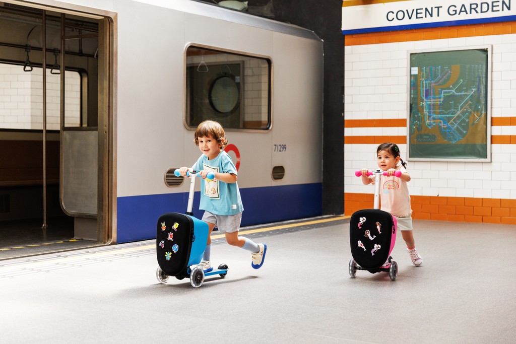 The Micro Scooter Luggage junior Patch & Play combines a children's suitcase and scooter in a unique design. It canbe ridden, pulled, and pushed - whereby pushing offers an ergonomic advantage and is gentle on the muscles and wrists. With the height-adjustable handlebar, the scooter grows with the child and accompanies them up to primary school age.