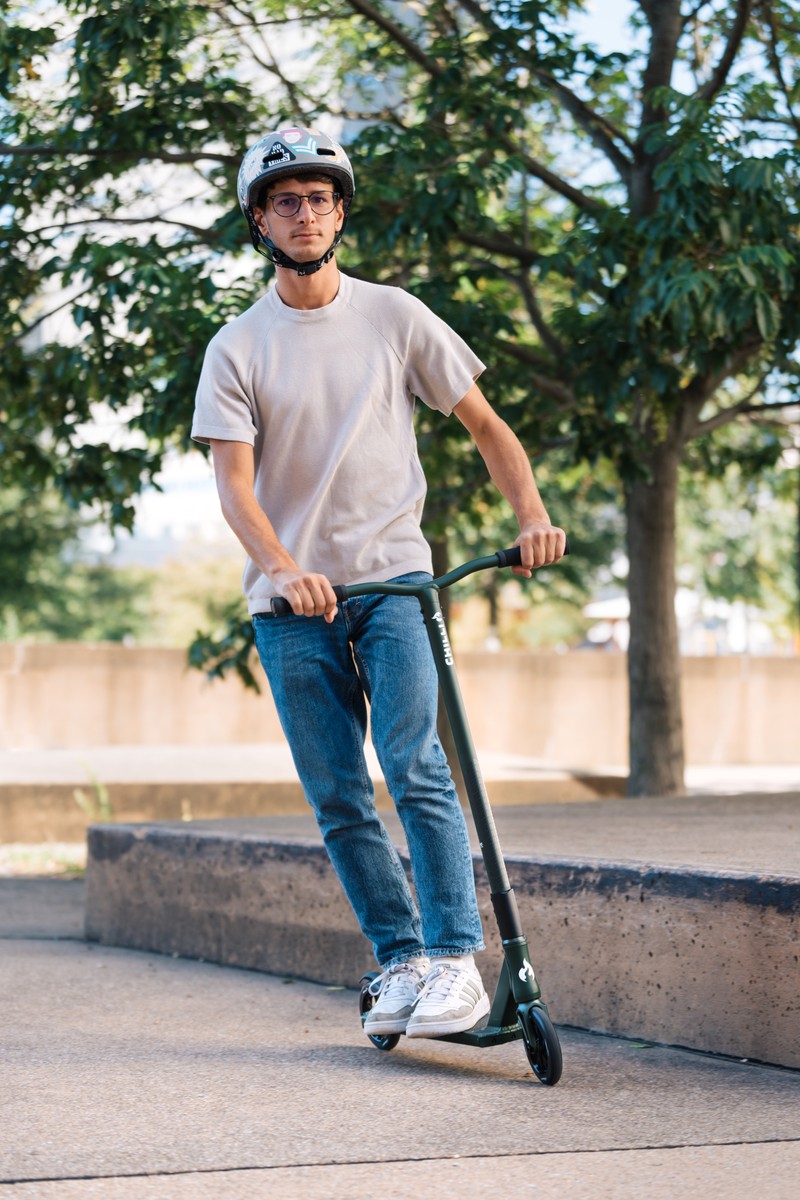 The scooter boasts an overall height of 98cm, ensuring a comfortable riding posture. Safety is prioritized with an extended, heat-resistant break, facilitating smooth and secure stops for enhanced confidence in executing stunts.