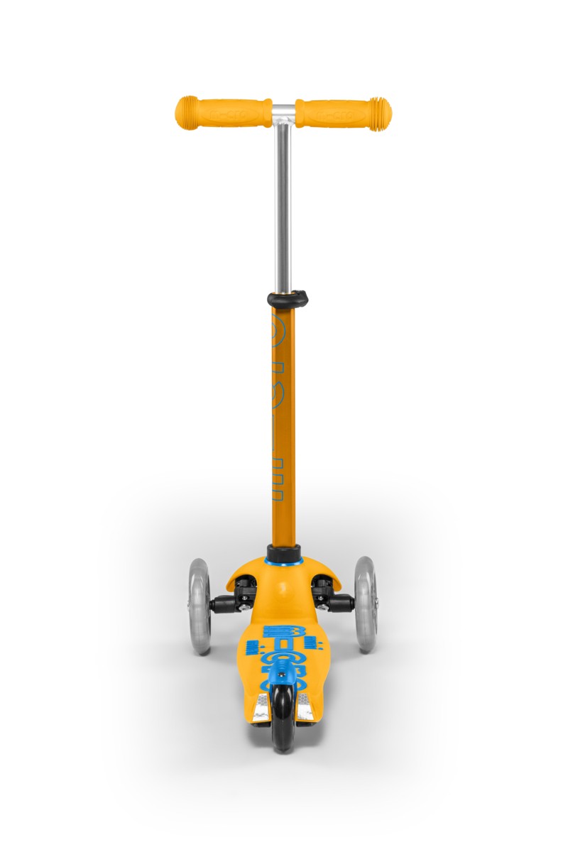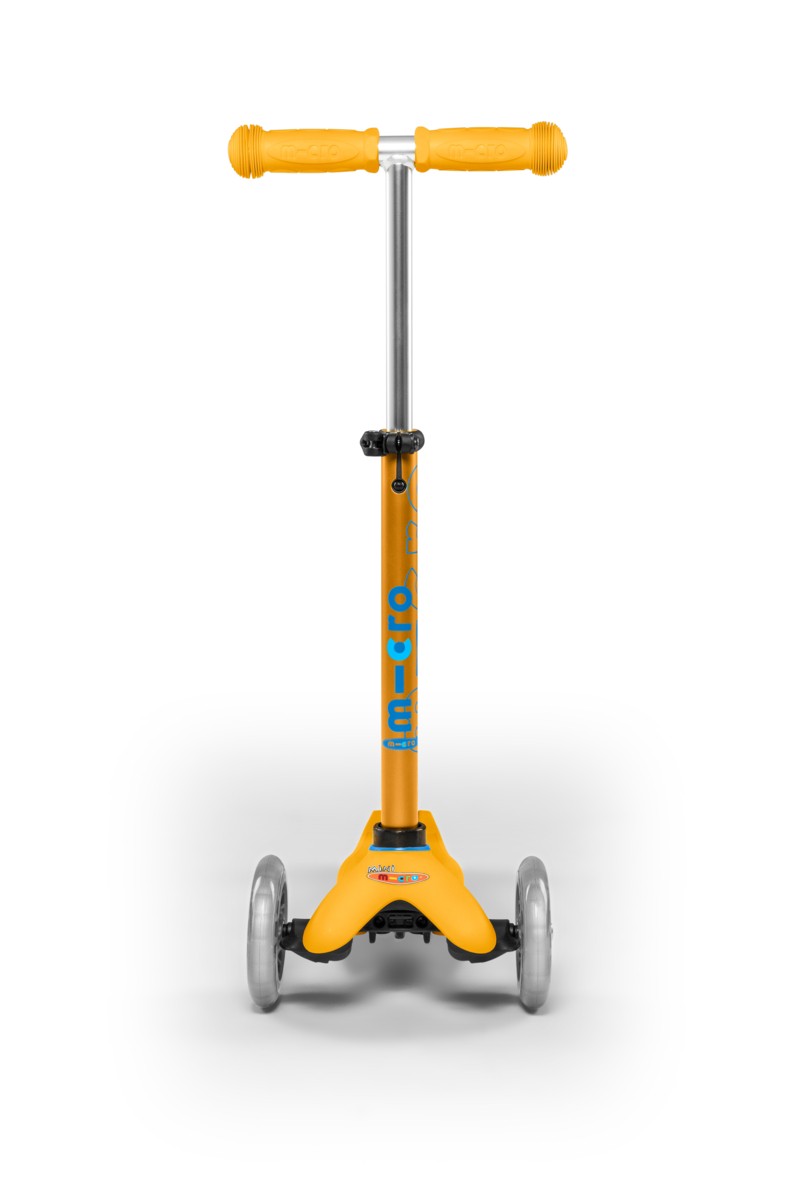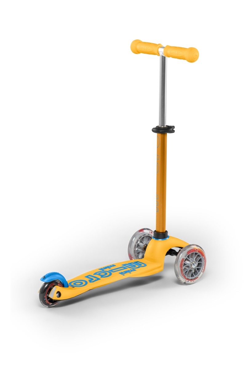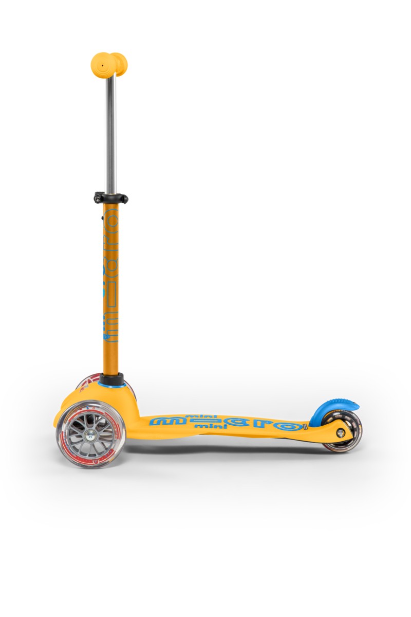 For children 2 to 5 years old Max Load: 50kg Three wheels for superior stability Wheel size: 120/80mm Wheel Material: PU Tbar Height: 49-67cm Tbar Removable Lowered board with strengthening flexiglass Product Weight: 1,95 kg Available colours: Ice Blue, Lavender, Orange and Ruby Red Patented, Swiss designJust like the MINI MICRO but with height-adjustable handlebar! Surfing the sidewalk – the Mini Micro was elected Toy of the Year by kids and parents several times ! This sports toy not only encourages movement and exercise, it also helps children to improve balance, coordination and motor skills. The Mini Micro Deluxe was specifically developed for toddlers and preschoolers in collaboration with Swiss medical professionals. The T-tube handle makes it even safer and has a safety lock so that only parents can remove it, when needed, for storing. The Mini Micro‘s unique lean-and-steer mechanism is patented and the deck is reinforced with fiberglass. The soft plastic and rounded edges make it easier for younger children to handle and helps avoid injuries. Now available as DELUXE version !