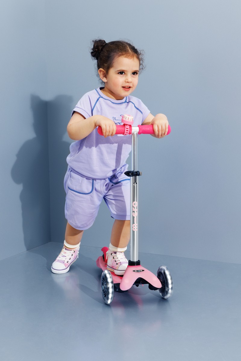 For children 2 to 5 years old Max Load: 50kg Three wheels for superior stability Deck Size: 11x30cm Deck Material: PP, TPR, PA, GF Wheel size: 120/80mm Wheel Material: PU with LED Tbar Height: 49-67cm Tbar Ajdustable and Removable Lowered board with strengthening flexiglass Product Weight: 1,95kg Available colours: Arctic Blue and Frosty Pink Swiss designGleaming Glides: Discover the Dazzling World with the Mini Micro Deluxe Glow LED Plus!