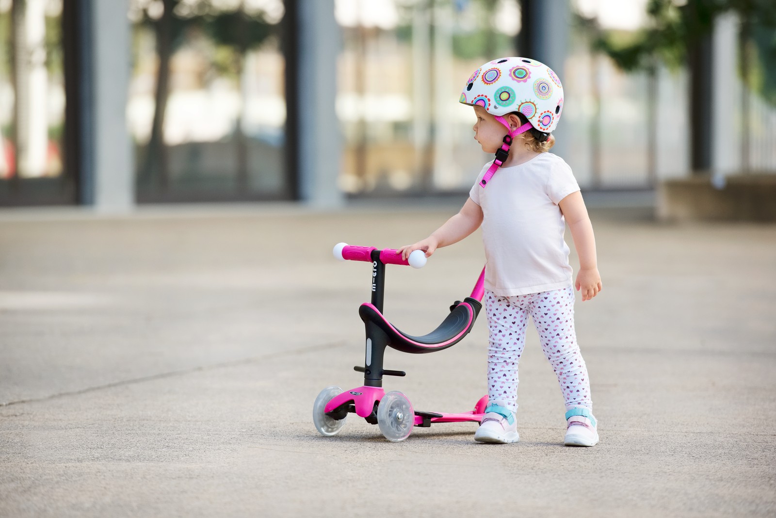 bar, as a mix between balance bike & scooter and finally as a classic Mini Micro Deluxe