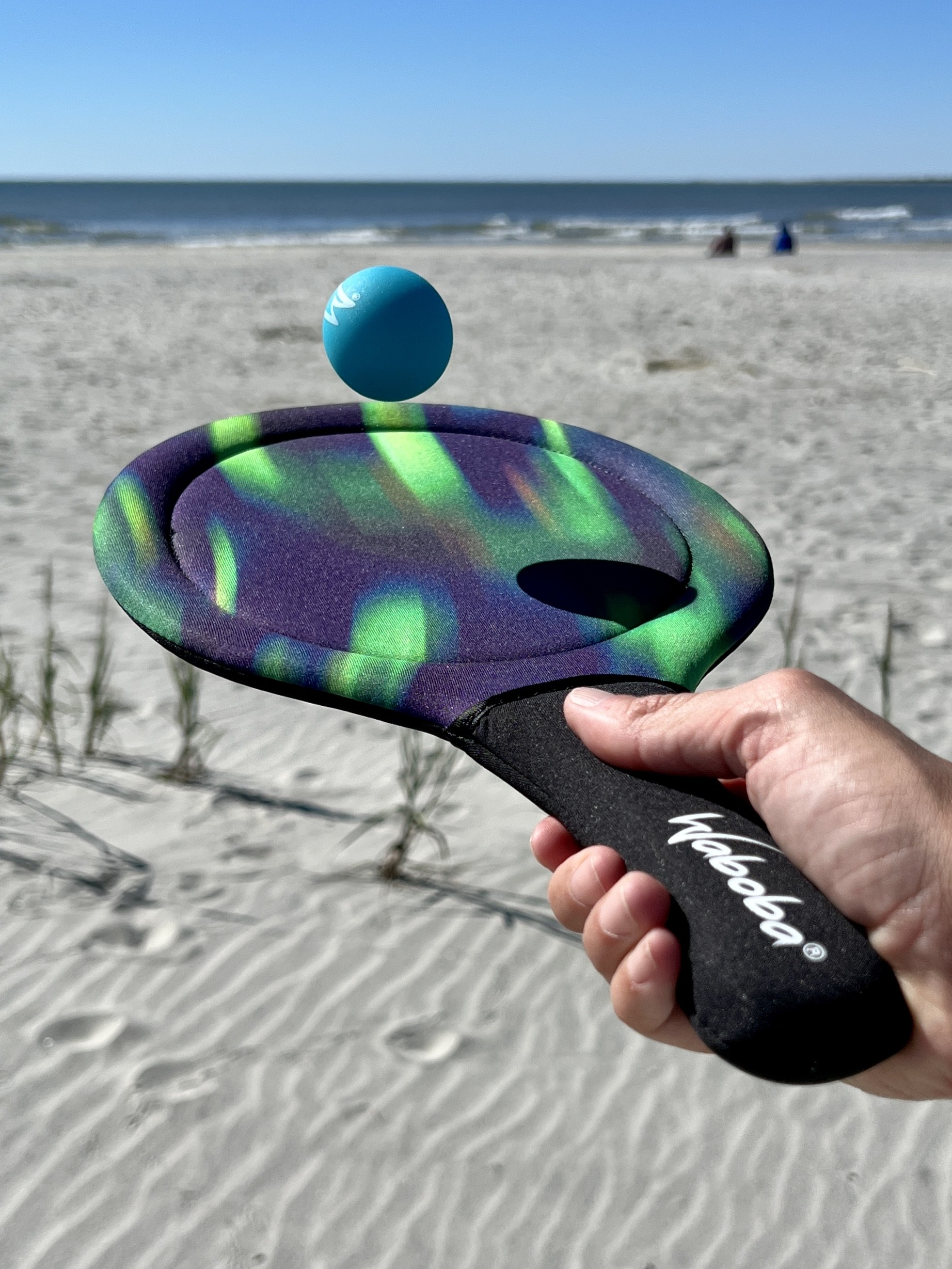 The Waboba Paddle Set is a must have for every beach bag! It's a summer essential for those classic summer days by the beach or pool. The paddles feature a soft waterproof cover for easy ball control and a non-slip handle grip. Plus, the ball floats so you can play when you’re wet or dry!